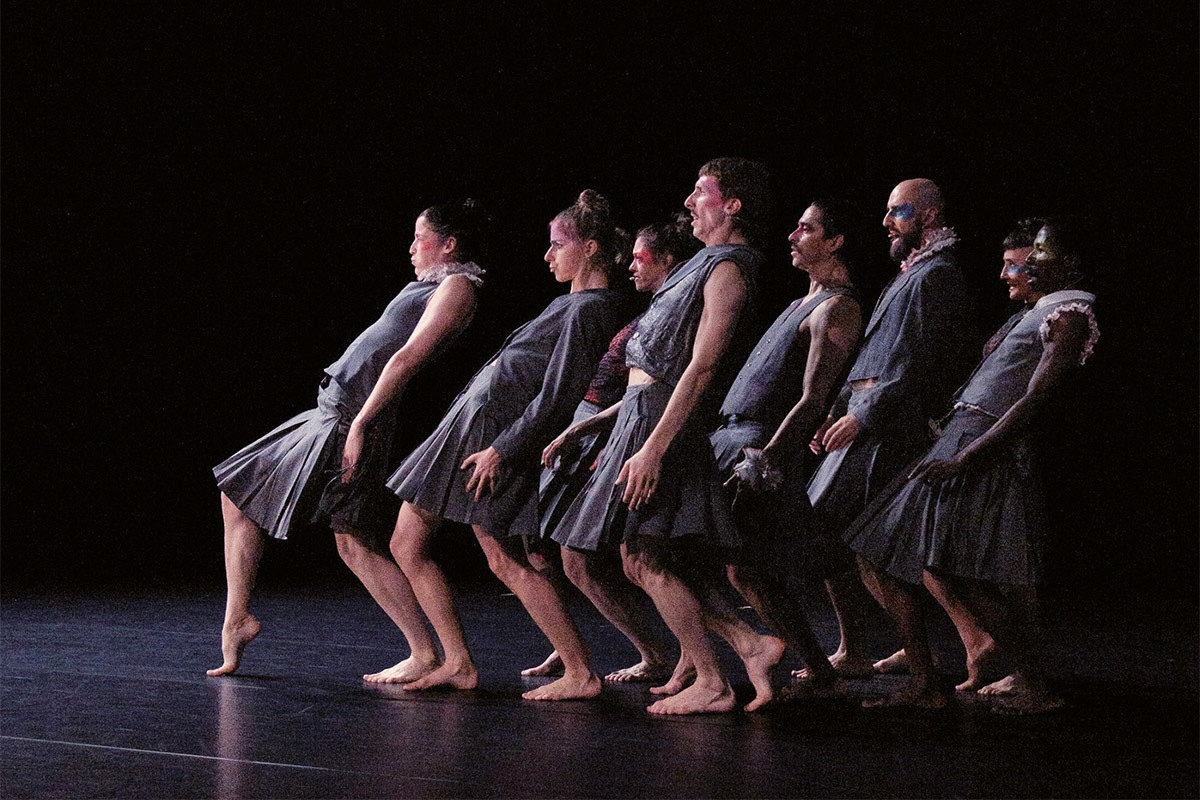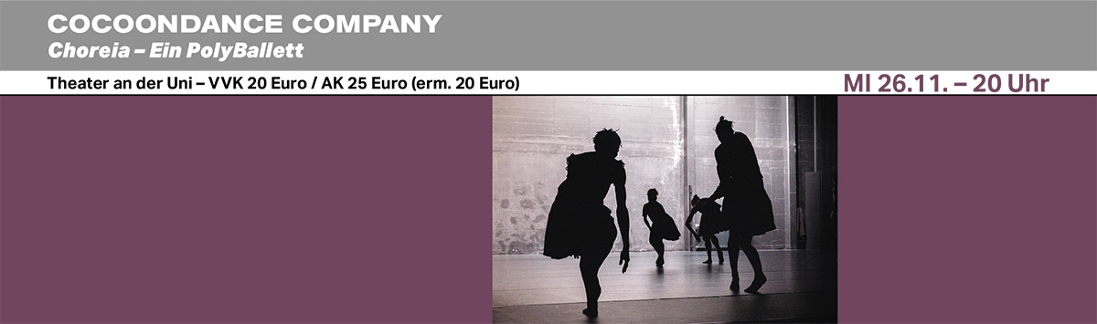 „Choreia“, das neueste Projekt der COCOONDANCE COMPANY, sucht nach dem verlorenen Raum der Gemeinschaft. Um bestehende Trennungen wie die von Bühne und Zuschauerraum aufzulösen, werden chorische Körper-, Raum- und Klangformen aus Folklore, Ballett und antiker Komödie herangezogen, die die Kraft haben, körperliche Distanz zu überwinden. Unentbehrlich ist dabei das Organ der Stimme, das über große Entfernung berühren und bewegen kann. „Kreiselnde Körper, keuchende Stimmen, ein rauschhafter Klangraum: Choreia entfaltet eine suggestive Wucht … CocoonDance gelingt erneut ein Stück von hypnotischer Intensität.“ (Bonner General-Anzeiger)