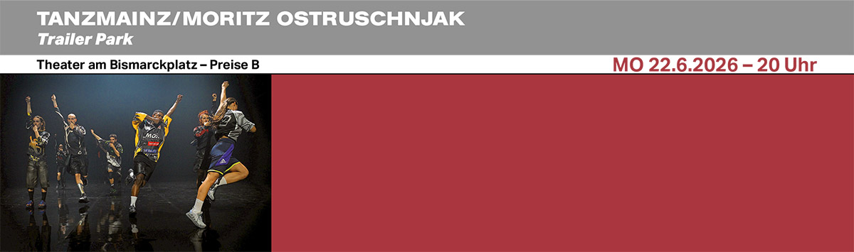 Moritz Ostruschnjak arbeitet nah am Puls der Zeit und beschäftigt sich mit der Frage, wie sich die zunehmende Digitalisierung des Lebens auf unsere körperliche und soziale Erfahrung auswirkt. Seine Arbeiten nehmen soziale Medien als Ausgangspunkt für ein einzigartiges Bewegungsvokabular und reflektieren so gesellschaftliche Prozesse tänzerisch. Gefühle der Überforderung und Faszination gehen bei der Auseinandersetzung mit dem Internet Hand in Hand. Durch bewusstes Kopieren und Zusammenstellen von Netz-Fundstücken schafft Ostruschnjak eine aufregende, mitreißende Flut von Bildern. Virale Videos, Memes, alles nutzen er und die zehn Tänzer:innen von TANZMAINZ als Vorlage. Die Bühne wird zum Nicht-Ort irgendwo zwischen analoger und digitaler Welt. „Ein mitreißender Ritt durch popkulturelle Referenzen.“ (3sat), „Ein hochaktuelles, originelles Stück.“ (tanznetz.de), „Fülle in jeder Sekunde. Eine begeisternde Choreografie!“ (Frankfurter Rundschau).