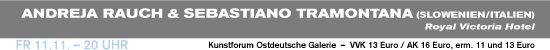 Tanz und Musik. Improvisation und Interaktion. Ein Spiel mit Klängen, mit Räumen – inneren und äußeren. Grenzen, Bewegung, Stillstand. Gefühlswelten – Affekt, Erregung, spannungsvolle Aus- und Einbrüche. Ein Spiel mit vollem Risiko, ein künstlerisches Wagnis. SEBASTIANO TRAMONTANA und ANDREJA RAUCH wagen mit ihrem gemeinsamen Projekt ein Experiment. Der sizilianische Posaunist und die slowenische Tänzerin lassen sich aufeinander ein, geleitet von einer gemeinsamen Idee und unterschiedlicher Erfahrungen. "Royal Victoria Hotel" ist der Titel ihrer improvisierten Performance, die sie im Begleitprogramm der Sonderausstellung "Otto Dix. Welt & Sinnlichkeit" im Kunstforum Ostdeutsche Galerie zeigen werden. Die Uraufführung findet anlässlich der Regensburger Tanztage statt und setzt die beliebte Reihe "hear east – jazz and more" im KOG fort.