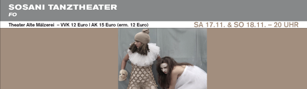 Das TANZTHEATER SOSANI unter der künstlerischen Leitung von Thea Sosani hat in den zurückliegenden Jahren mit einer ganzen Reihe von spannenden Produktion an verschiedenen Spielorten überzeugen können. In ihrem neuen Stück "FO" - inside femininity, von sieben jungen Frauen getanzt, geht es um Rituale der Weiblichkeit und entsprechende Körperbilder. Jemanden verlassen, Gefühle loslassen, Ereignisse, Lebensphasen hinter sich lassen - immer wieder fordert das Leben diesen emotionalen Kraftakt. Dass Körper und Seele eng verknüpft sind, ist nichts Neues. Aber wie drücken sich diese emotionalen Zustände körperlich aus? Wie bewegt sich jemand, der zwischen Weitergehen und Loslassen festhängt? Davon handelt diese neue Produktion.