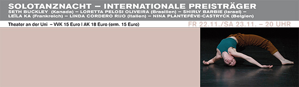 Zu erleben sind: Seth Buckley (Kanada) mit "Onírico", Loretta Pelosi Oliveira (Brasilien) mit "Dolores", Shirly Barbie (Israel) mit "Do You Love Me", Linda Cordero Rijo (Italien) mit "No Room Service, Please", Nina Plantefève-Castryck (Belgien) mit "All in One" und Leïla Ka (Frankreich) mit "Pode Ser". In ihrem Stück geht es um Grenzen, Sehnsüchte und die Schwierigkeit, gleichzeitig Teil einer Gemeinschaft und doch immer alleine zu sein. Das Solo bringt Hip-Hop mit der Musik von Franz Schubert zusammen. „Eine radikal konsequente Arbeit mit stark kontrastierenden Bewegungen voller Spannung, Präzision und beindruckender Musikalitat." (Jury)