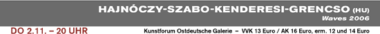 Live-Musik und Tanz. Improvisation und Interaktion. "Waves 2006" ist die Erweiterung eines musikalischen Projektes des ungarischen Komponisten CSABA HAJNÓCZY um zwei vortreffliche Improvisatoren und die herausragende zeitgenössische Tänzerin REKA SZABO. "Waves 2006" beruht auf einer großen Zahl von Samples, die auf speziellen Radiofrequenzen mitgeschnitten worden sind. Dieser geräuschhafte Wellensalat wird mit melodiösen Soundschichten der E-Gitarre, akustischen Instrumenten und Gesang sowie choreografiertem und improvisiertem Tanz zu einer eigentümlich-faszinierenden Bühnenerzählung verdichtet, die sich inhaltlich an der biblischen Entstehungsgeschichte der "Genesis" orientiert.